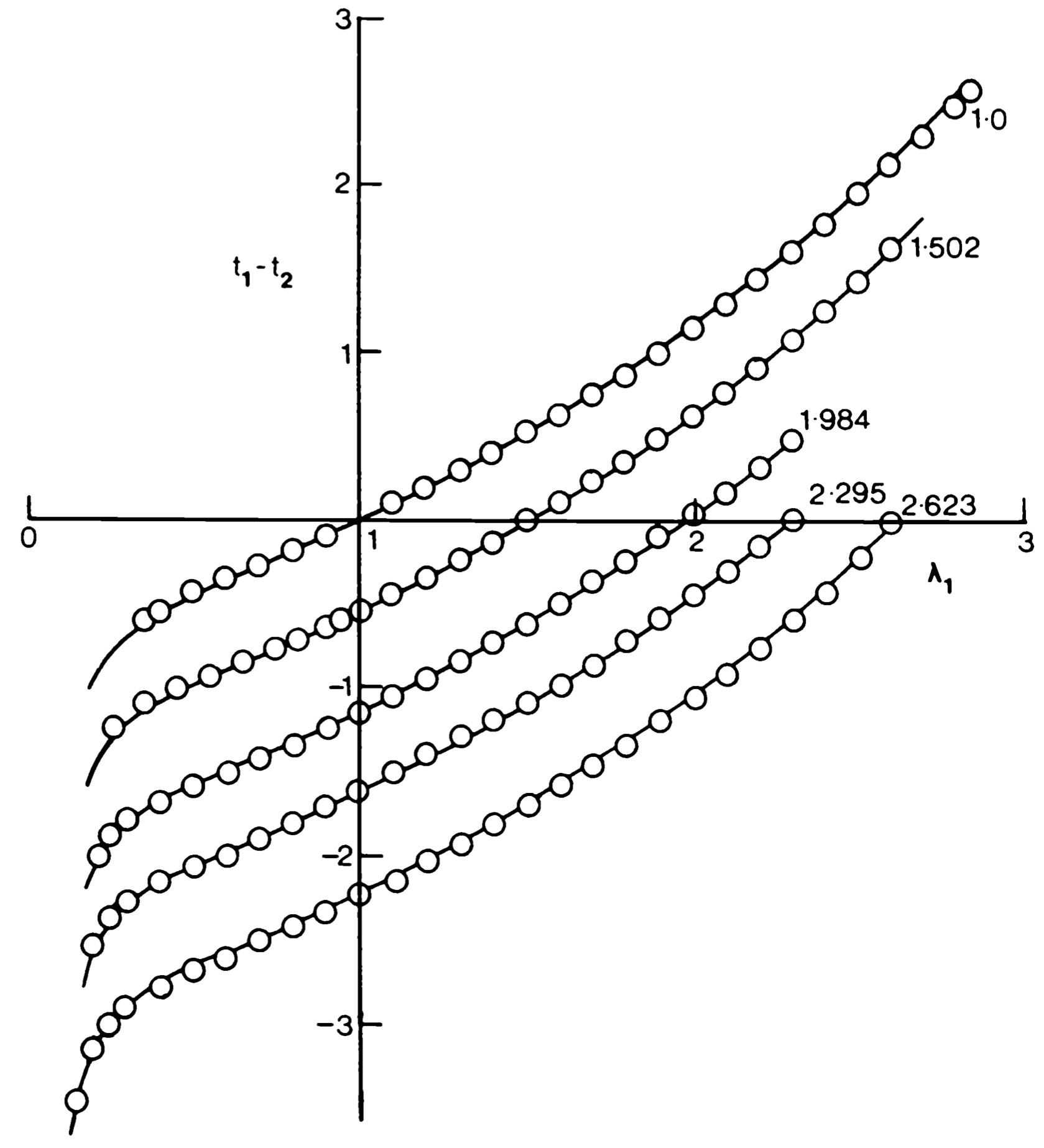 Finite-amplitude inhomogeneous plane waves in a deformed Mooney-Rivlin material.
