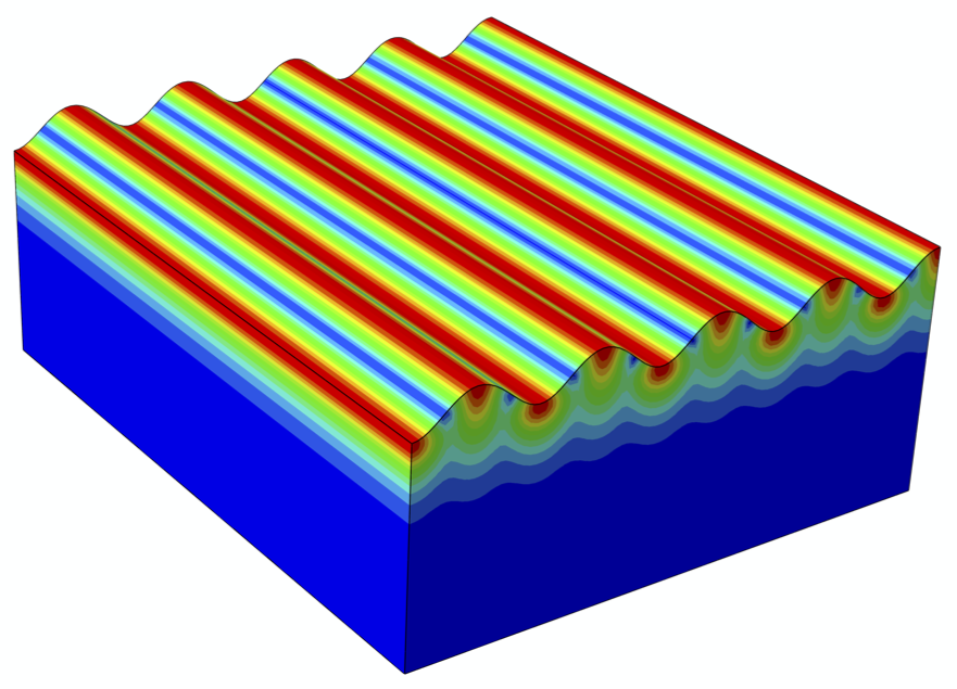 Finite-amplitude inhomogeneous plane waves in a deformed Blatz-Ko material.
