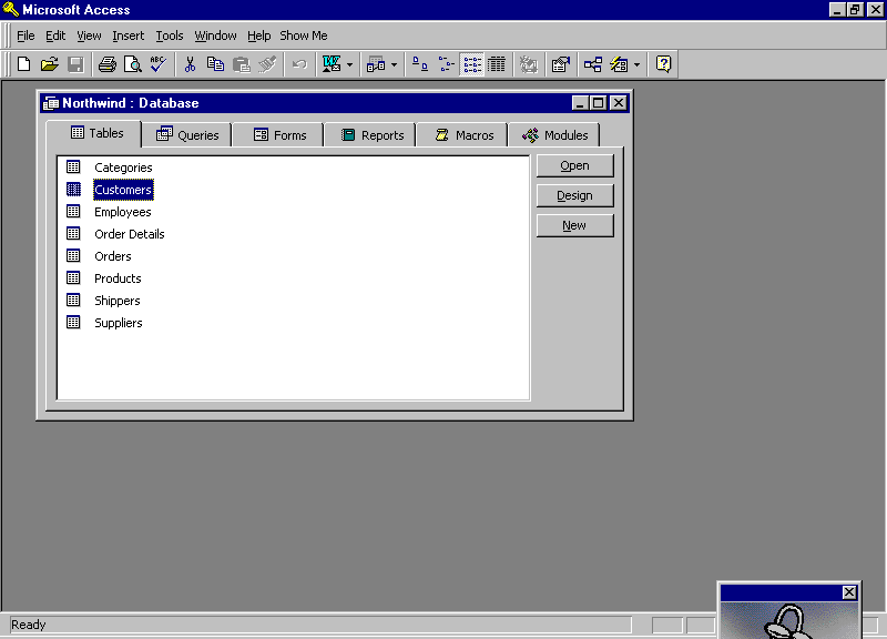 TIP: WHILE DOING YOUR LAB, YOU CAN RUN INTERNET EXPLORER (OR NETSCAPE) TO LOOK AT THE LAB HANDOUT, AND AT THE SAME TIME RUN ACCESS TO CARRY OUT THE TASKS IN THE HANDOUT IN A SEPARATE WINDOW. FOR EACH WINDOW, CLICK ON THE SMALL 'BOX' ICON SECOND FROM THE END IN THE TITLE BAR (BESIDE THE 'X' IN THE TOP RIGHT CORNER). IT IS GOOD TO GET INTO THE PRACTICE OF DOING THIS - IT ALLOWS YOU TO CUT AND PASTE MATERIAL.