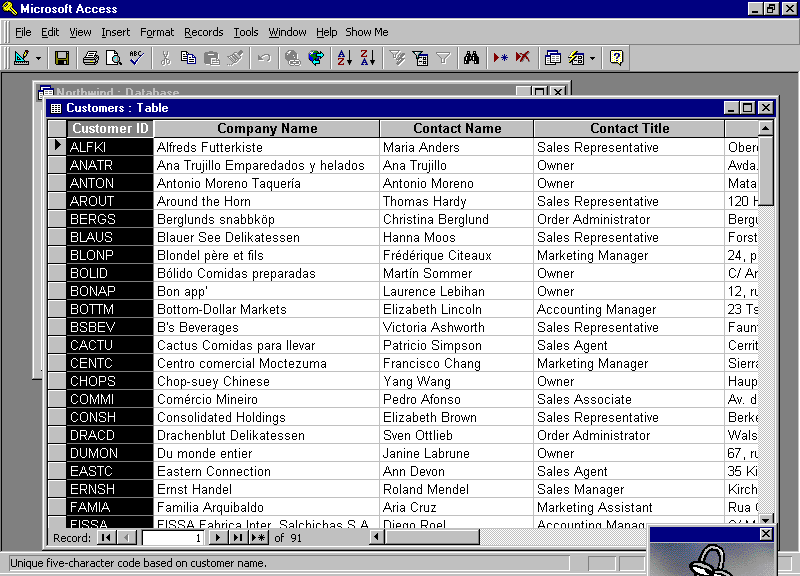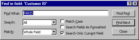 Note at the left of the Customer ID field a small key symbol. This indicates that the Customer ID has been designated as the primary key for this table.
