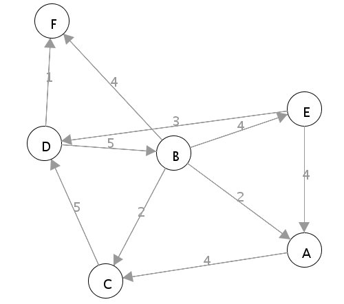 with 6 cities labelled A, B, C, D, E, F. You can ignore the direction