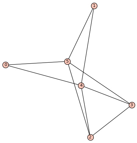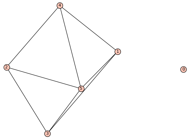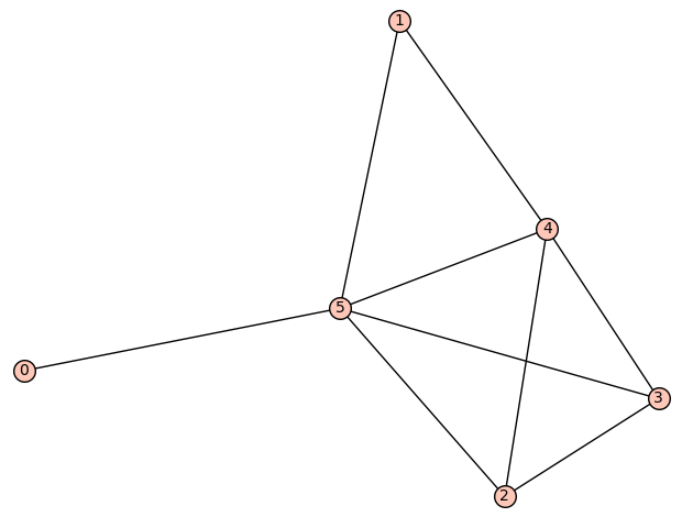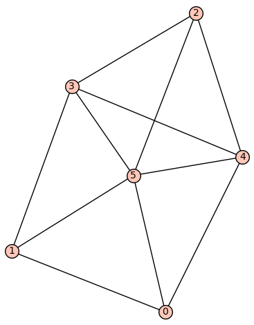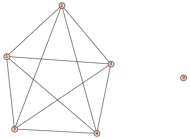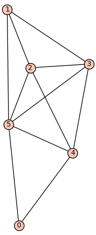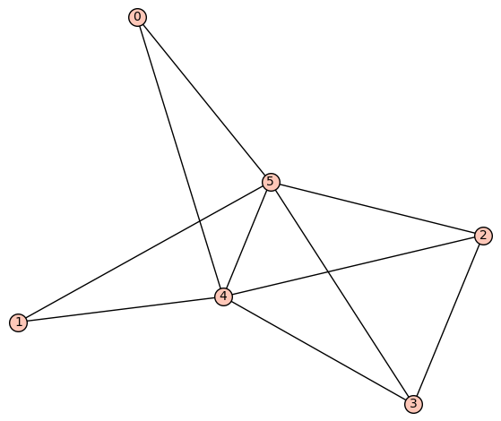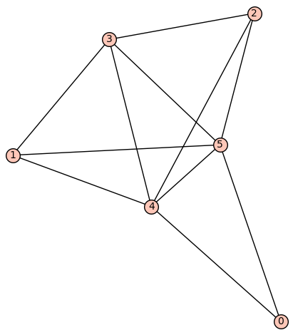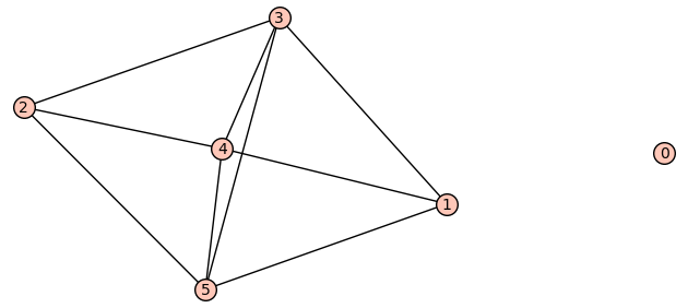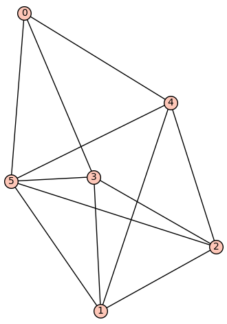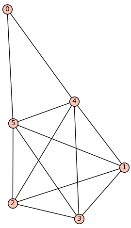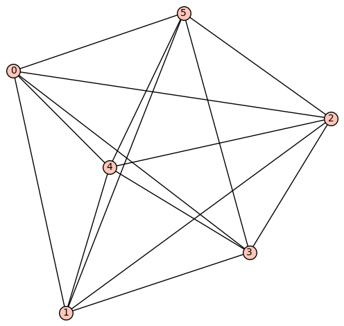 | 15 edges: | [[0, 1], [0, 2], [0, 3], [0, 4], [0, 5], [1, 2], [1, 3], [1, 4], [1, 5], [2, 3], [2, 4], [2, 5], [3, 4], [3, 5], [4, 5]] |