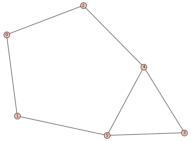 | 8 edges: | [[0, 1], [0, 5], [1, 5], [2, 3], [2, 4], [3, 4], [3, 5], [4, 5]] |