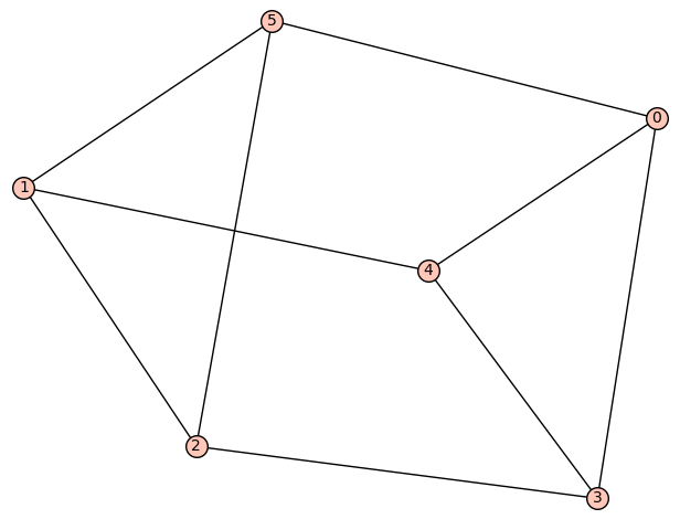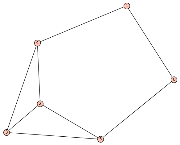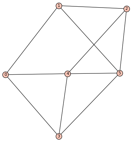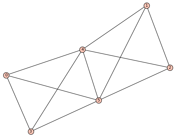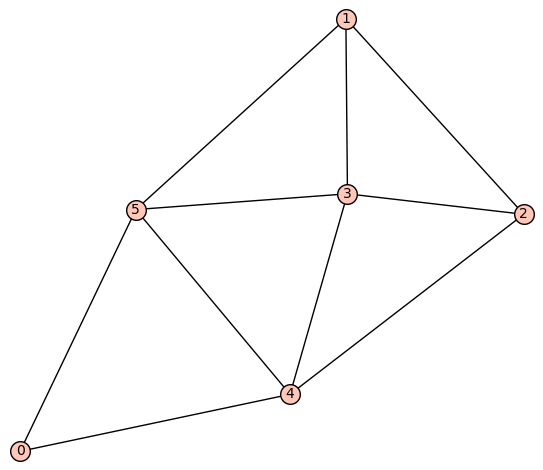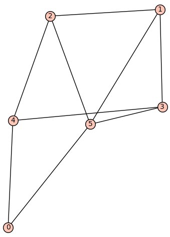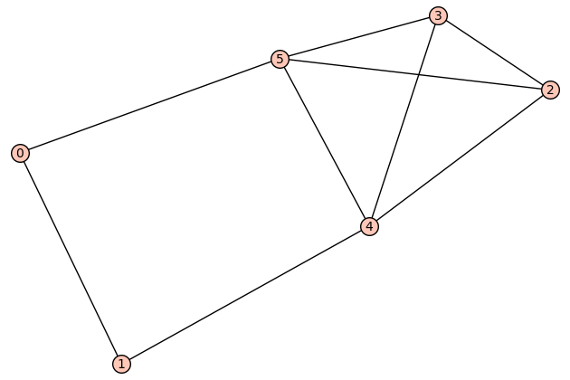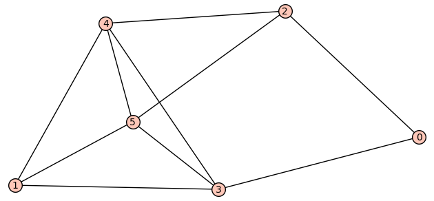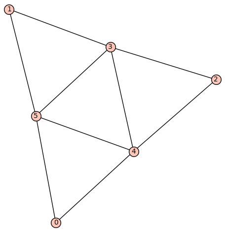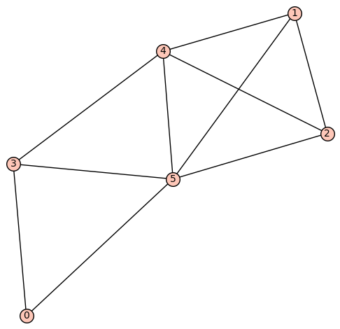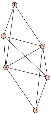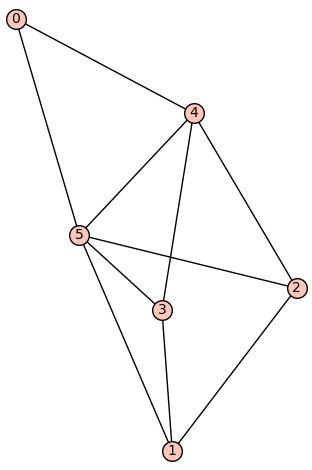 | 10 edges: | [[0, 1], [0, 3], [0, 4], [1, 2], [1, 5], [2, 4], [2, 5], [3, 4], [3, 5], [4, 5]] |