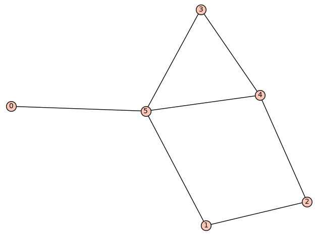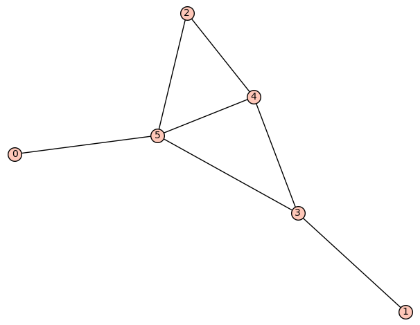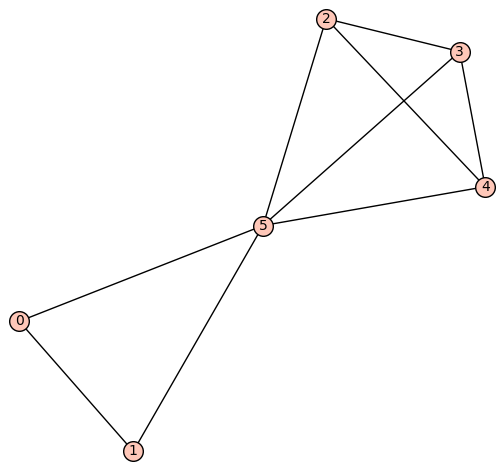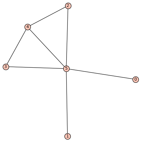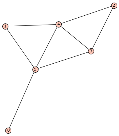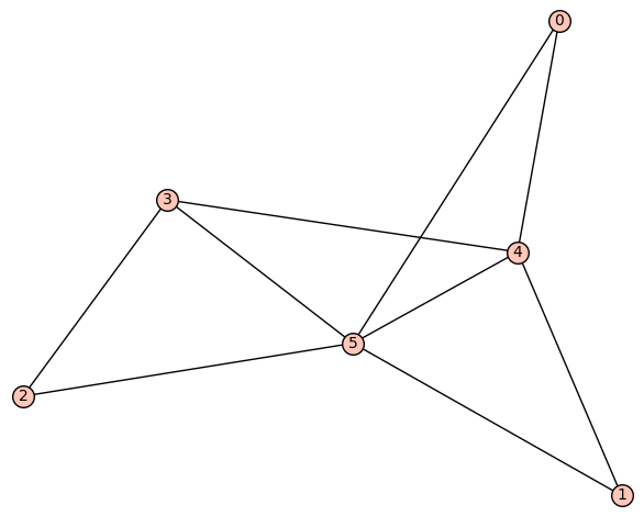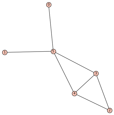 | 8 edges: | [[0, 1], [0, 5], [1, 5], [2, 4], [2, 5], [3, 4], [3, 5], [4, 5]] |