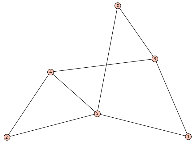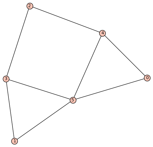 | 8 edges: | [[0, 1], [0, 5], [1, 3], [2, 4], [2, 5], [3, 4], [3, 5], [4, 5]] |