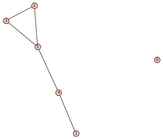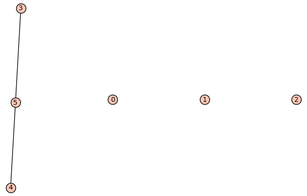 | 5 edges: | [[0, 1], [2, 5], [3, 4], [3, 5], [4, 5]] |