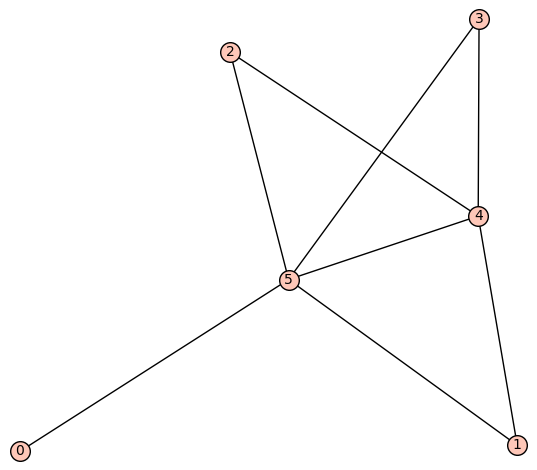 | 7 edges: | [[0, 5], [1, 5], [2, 4], [2, 5], [3, 4], [3, 5], [4, 5]] |